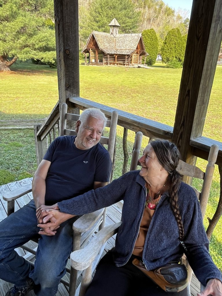 One of the cabins housing a new solar + storage system was originally built as a “solar envelope home,” using a passive system to conserve energy year-around. It is one of a variety of log cabin styles that made up the historic Model Log Village in Cosby, established decades ago by the magazine Log Home Guide for Builders and Buyers. The other cabin with solar + storage is Whisperwood Cabin. This Village is what the Haynes converted more than 30 years ago to their family’s bed and breakfast business, with their 48th wedding anniversary ahead this year.